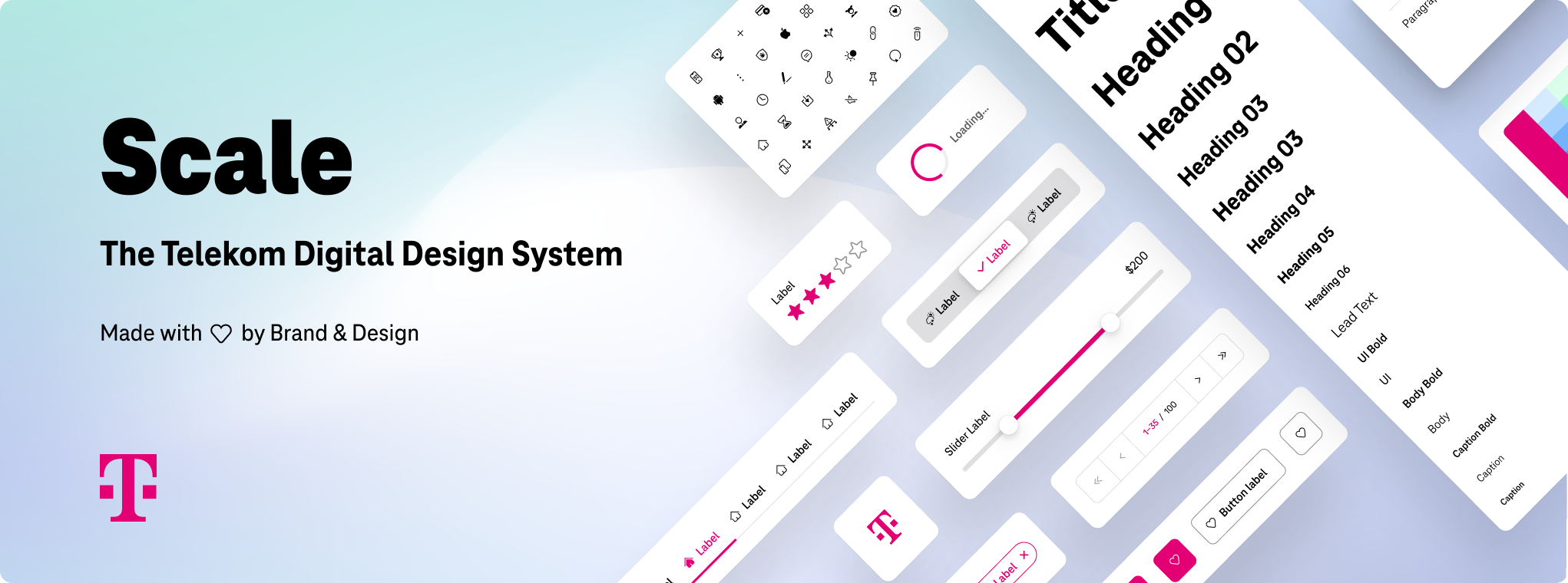 Scale is the digital design system for Telekom products and experiences. By default, Scale is built to align with our corporate brand and design but allows for easy customization to fit your particular product. It helps you build your digital products faster and create superior experiences with ease. With production-ready components for code and design, a central library, and comprehensive documentation, Scale has everything you need. Currently, Scale is an open beta.