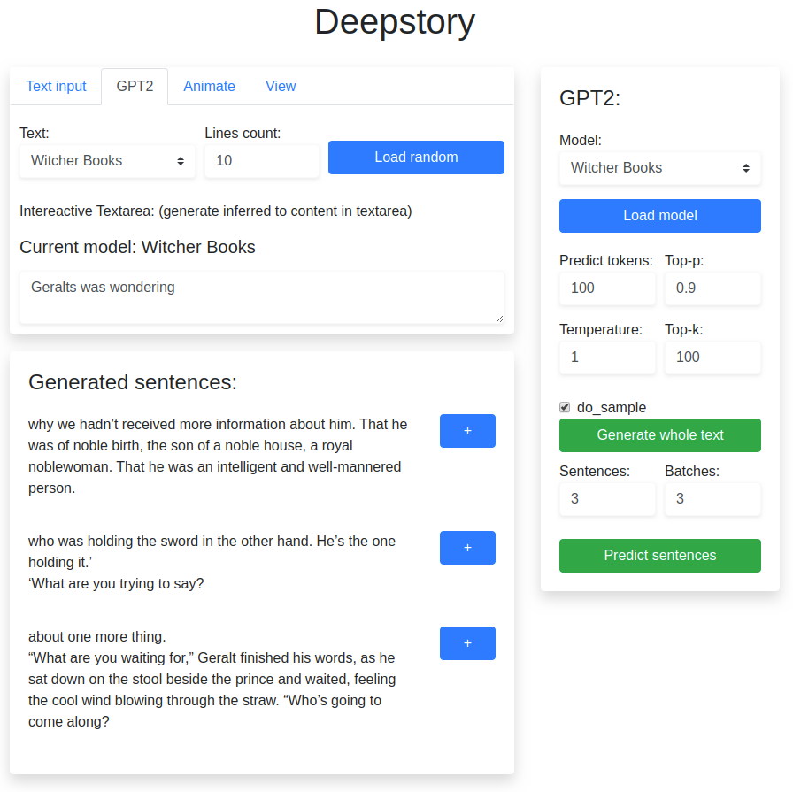 - GPT2 support interactive mode that generates several batches of sentences and provides an interface to add those sentence