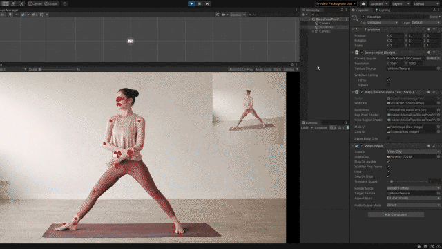 This works by using the MediaPipe Pose model in Unity Barracuda.