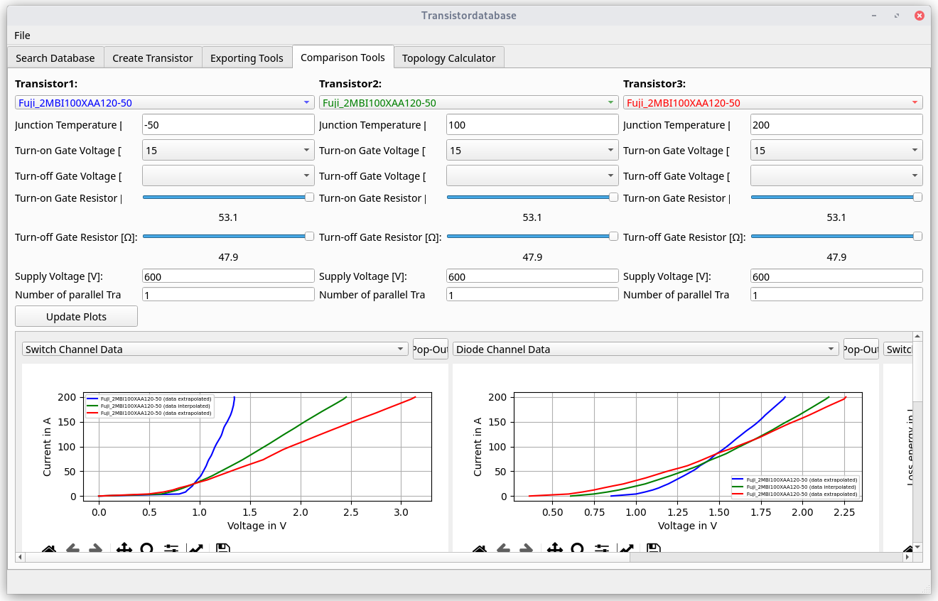 - Compare transistors (interpolate switch loss data for new gate resistors and temperatures, ...)