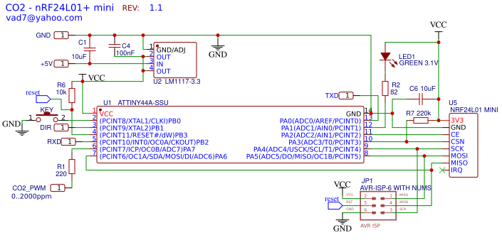 Sends the CO2 value received from the Senseair S8 sensor (PWM out) using nRF24l01 mini