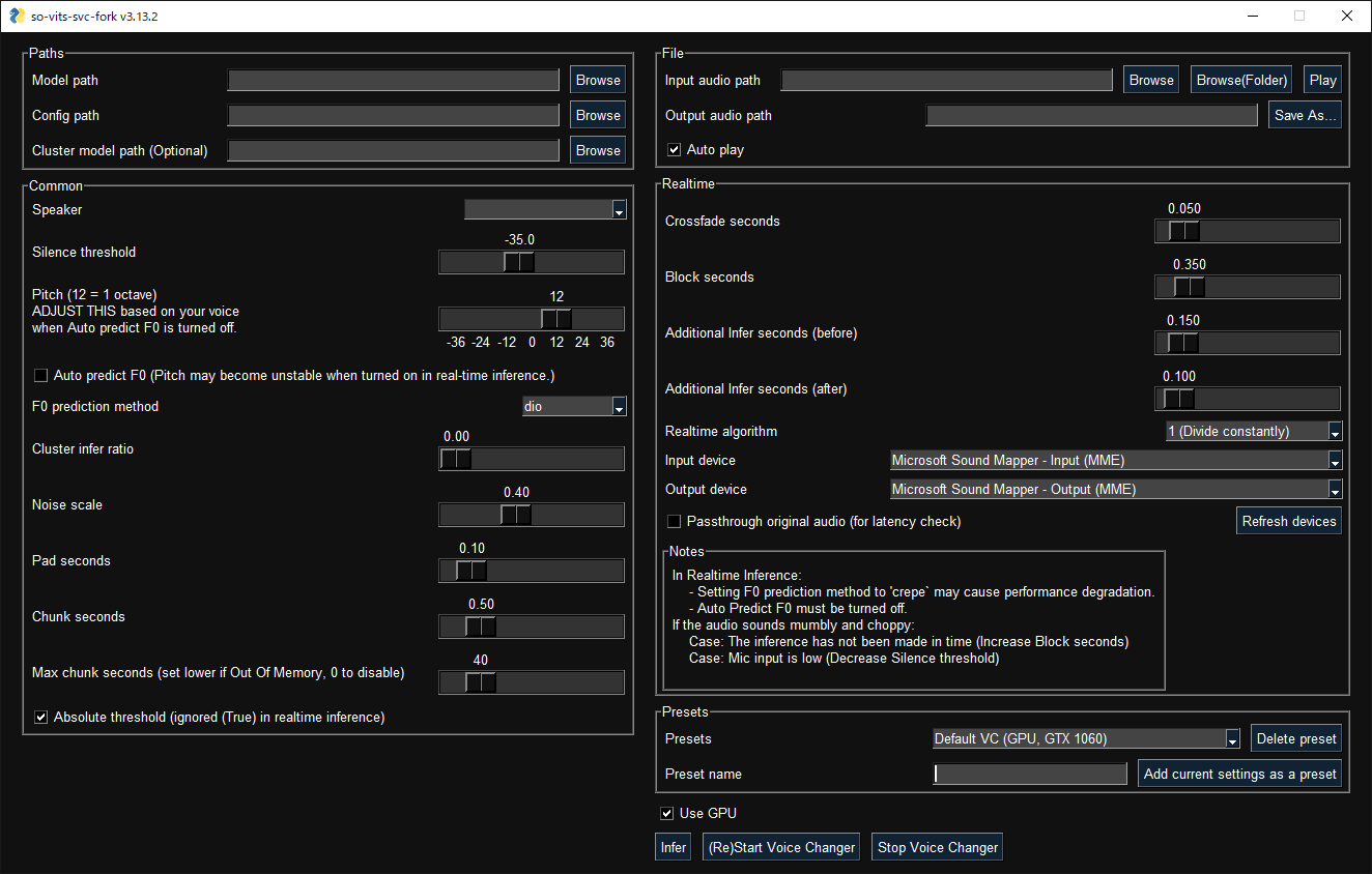 A fork of so-vits-svc with realtime support and greatly improved interface. Based on branch 4.0 (v1) (or 4.1) and the models are compatible. 4.1 models are not supported. Other models are also not supported.