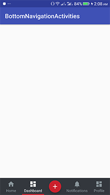 Another activity has been added, which shows an example of creating BottomNavigationView with center button as in Zomato app. Here is the screenshot of the demo.