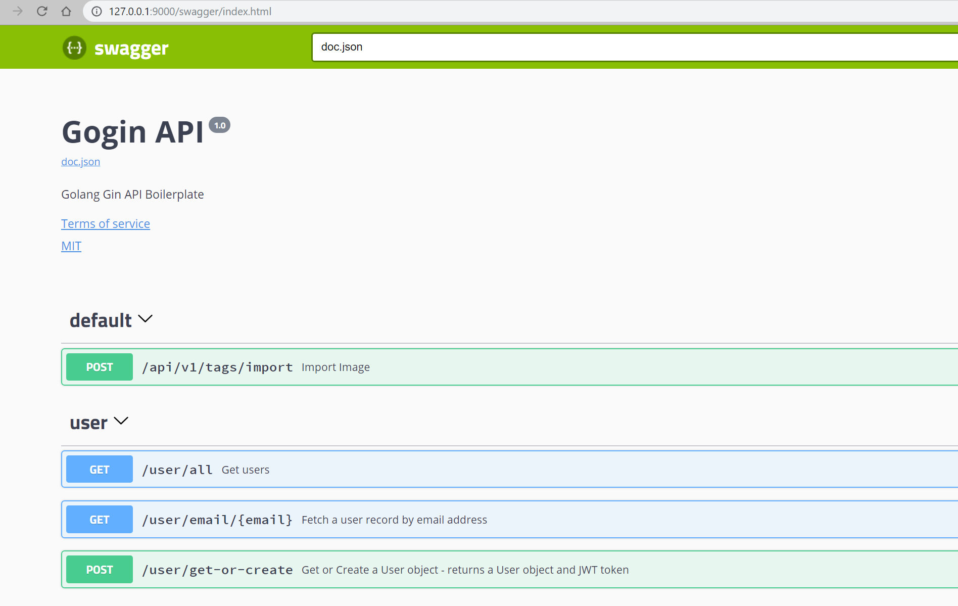 GoGin is a Golang & Gin API starter template with some built in niceities to help you hit the ground running. Swagger is built for robust API documentation and testing.