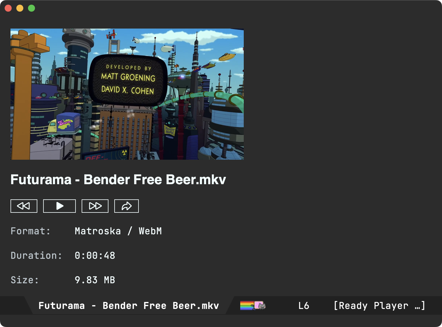 '(("mpv" "--audio-display=no" "--video=no" "--input-ipc-server=<<socket>>")))If you have SF symbol rendering in Emacs on macOS, you can use enable usage in buttons by invoking (ready-player-macos-use-sf-symbols)