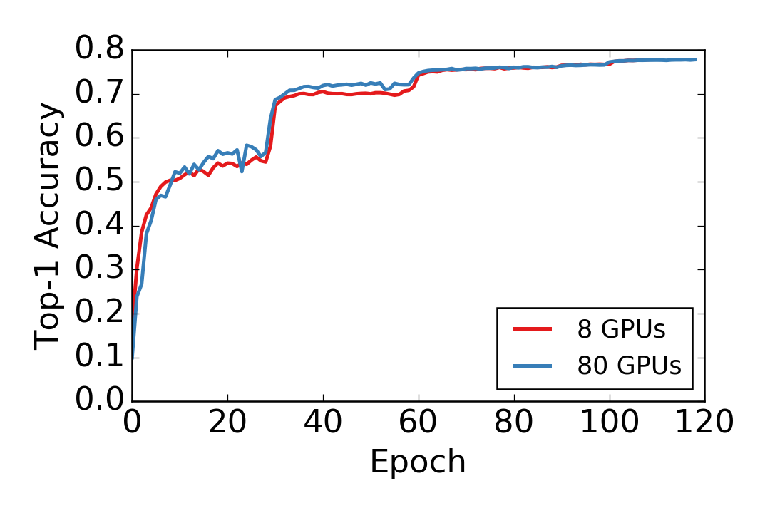 - Hardware: 16x AWS P2.16xlarge with 256 GPUs in total.