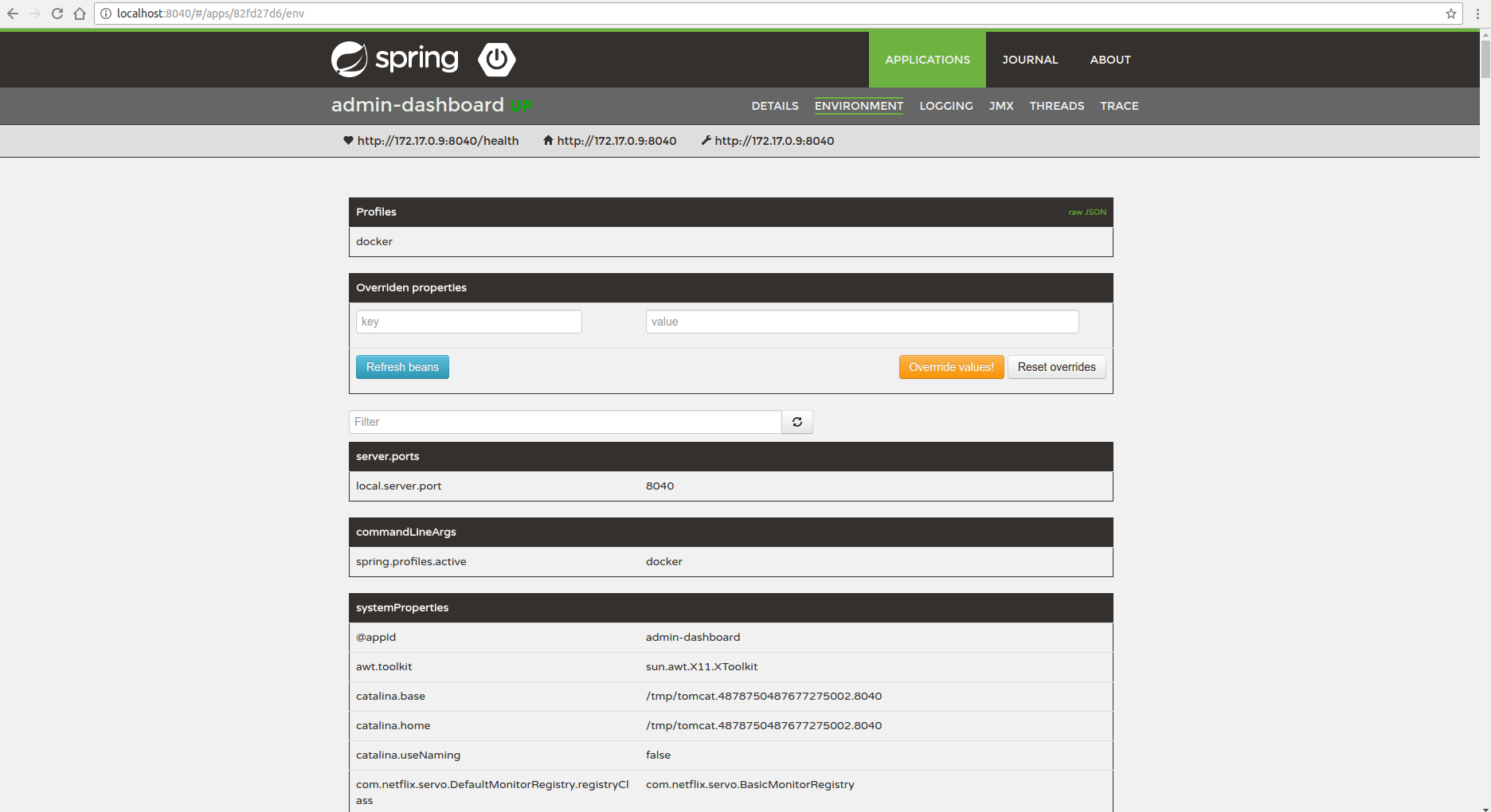Spring Boot Admin Environment