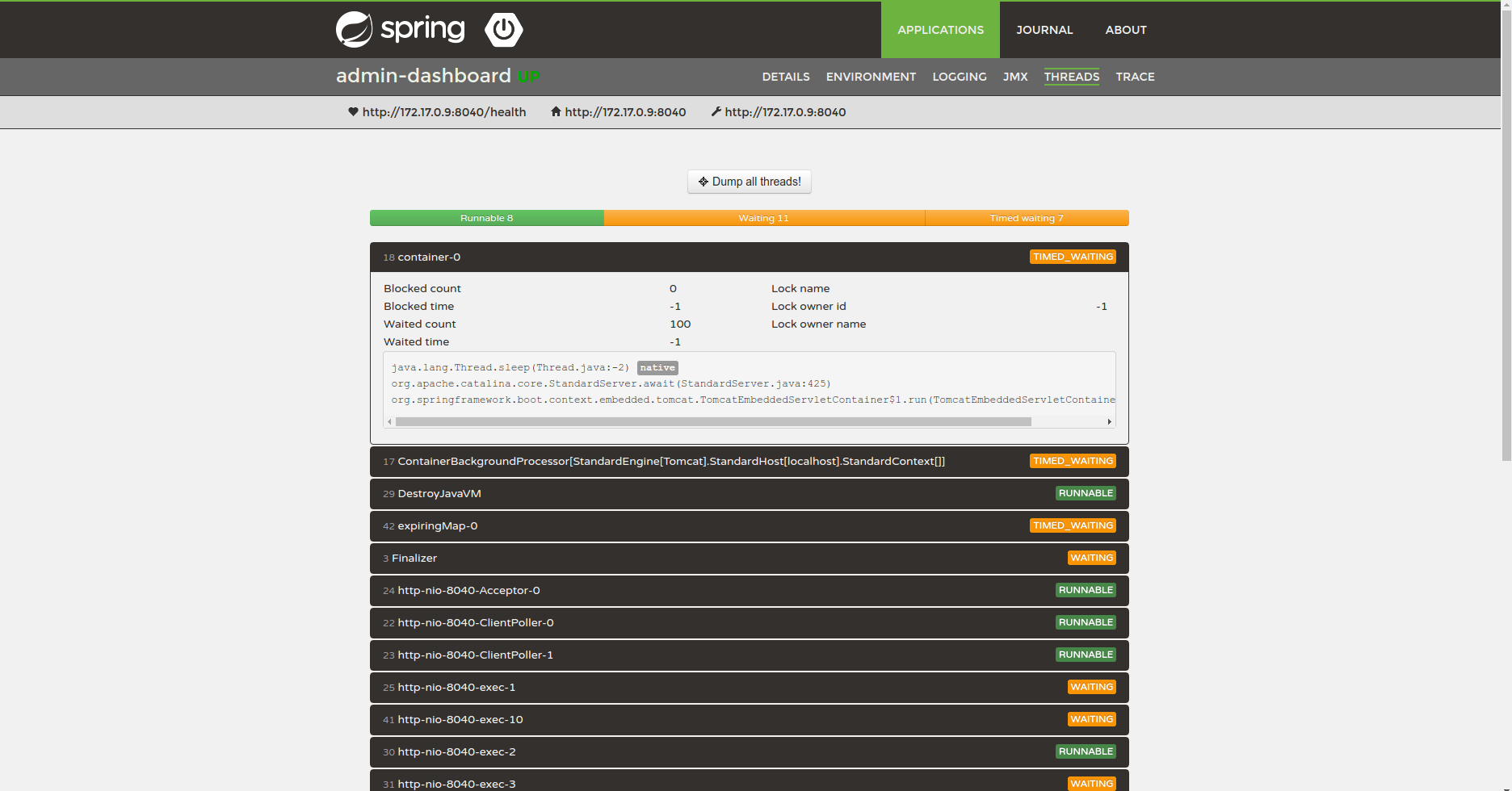 Spring Boot Admin Thread Dump