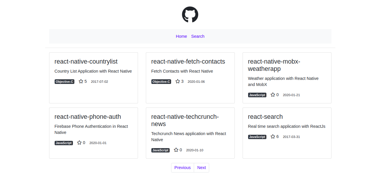 react-github Fetch and search github repositories with React + Redux Installation git clone https://github.com/zauribrahimkhalilov/react-github.git cd react-github npm install npm start